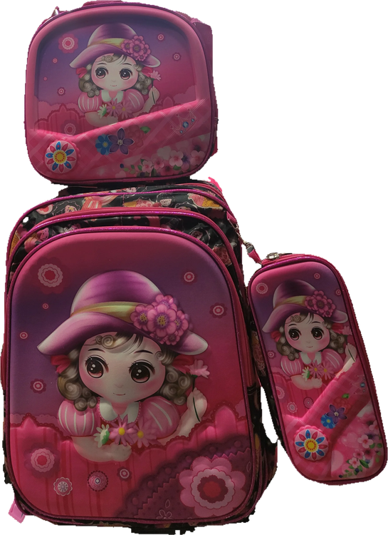 کوله سه تیکه دارای جا مدادی و کیف غذا می باشذ